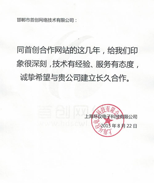 上海環(huán)儀電子科技有限公司對我公司評價