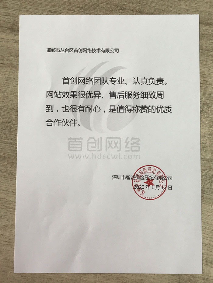 深圳智誠(chéng)公司對(duì)首創(chuàng)網(wǎng)絡(luò)評(píng)價(jià)