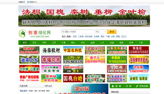 創(chuàng)藝綠化網(wǎng)是國(guó)內(nèi)較早的苗木花卉行業(yè)門戶網(wǎng)站,經(jīng)過(guò)多年的運(yùn)行和多次的改動(dòng),網(wǎng)站已發(fā)展成為框架完善、信息豐富、功能強(qiáng)大的電子商務(wù)服務(wù)平臺(tái),是園林、苗木、花卉、綠化行業(yè)的商業(yè)貿(mào)易門戶網(wǎng)站,目前已有全國(guó)各個(gè)省市的企業(yè)在本站注冊(cè)成為正式會(huì)員。