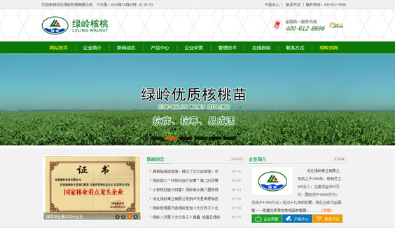 河北綠嶺果業(yè)有限公司成立于1999年,現(xiàn)有員工400余人,注冊(cè)資金9503萬(wàn)元,固定資產(chǎn)16809萬(wàn)元,總資產(chǎn)41064萬(wàn)元。經(jīng)過(guò)十幾年的發(fā)展,現(xiàn)在已成為全國(guó)唯一一家集優(yōu)質(zhì)薄皮核桃品種繁育、種植、研發(fā)、深加工和銷售為一體的全產(chǎn)業(yè)鏈現(xiàn)代化大型企業(yè)。擁有綠嶺薄皮核桃20萬(wàn)畝,苗木繁育基地2000余畝,是我國(guó)最大的集約化優(yōu)質(zhì)薄皮核桃生產(chǎn)基地;現(xiàn)代化的深加工車間9個(gè),共10萬(wàn)多平方米,建成了獨(dú)有的“河北省核桃工程技術(shù)研究中心”。
